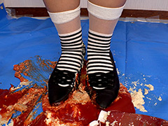 【クラッシュフェチ】【4K】みわちゃんのフードクラッシュ 黒ローヒールパンプス/ボーダーソックス/裸足|究変団|kyuuhendan-0012【フル動画】